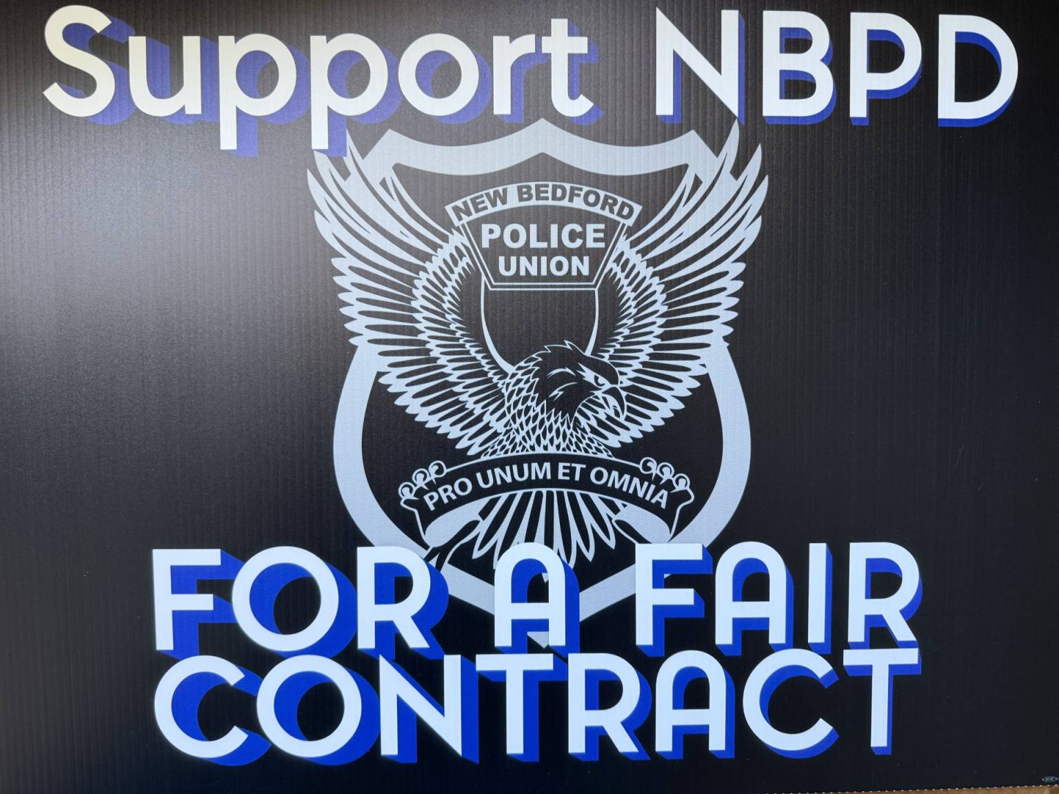 As you drive around the city of New Bedford, and other surrounding towns, you may see signs in front of some homes and local businesses. These signs, black in color with the New Bedford Police Union logo in the backdrop, read “SUPPORT NBPD FOR A FAIR CONTRACT”. Sadly, we have been without a contract since July 1, 2024. The New Bedford Police Union feels that this is unacceptable, especially when we have been operating well below the required staffing levels and all areas of the department are short-staffed. It is important to note that this has not deterred us from providing the best services that we can for the people of the city of New Bedford.